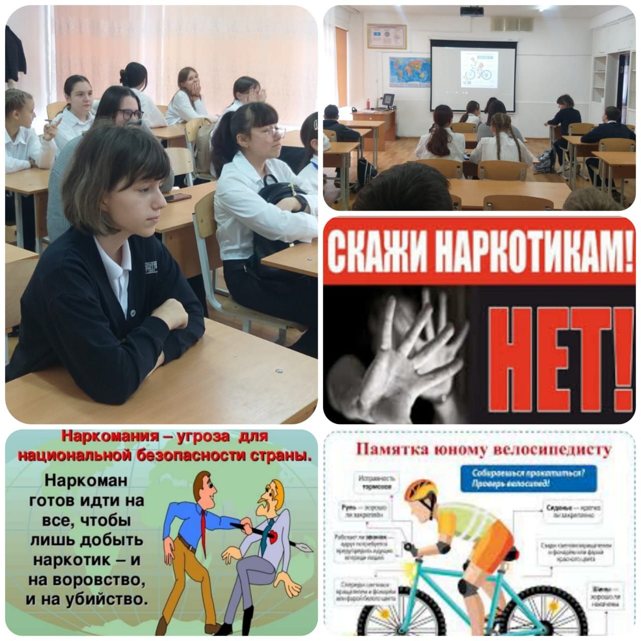 "Наркотики - угроза национальной и мировой безопасности" / "Правила безопасной езды на велосипеде".