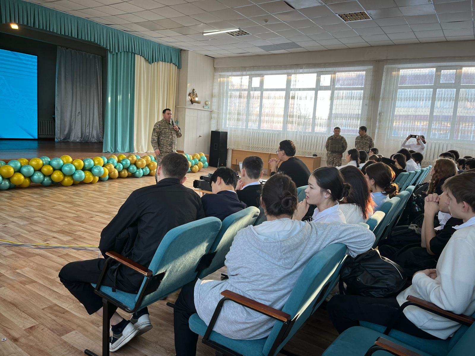 05.12.2024 жылы мектебімізге 999270 әскери бөлімнен келген майор Шағдабай Ерқанат және майор Дамаров Алексей 9-10-11 сыныптармен әскери өмір,әскери оқу орындарына түсу жолдарын айта кетті,және Қарулы…