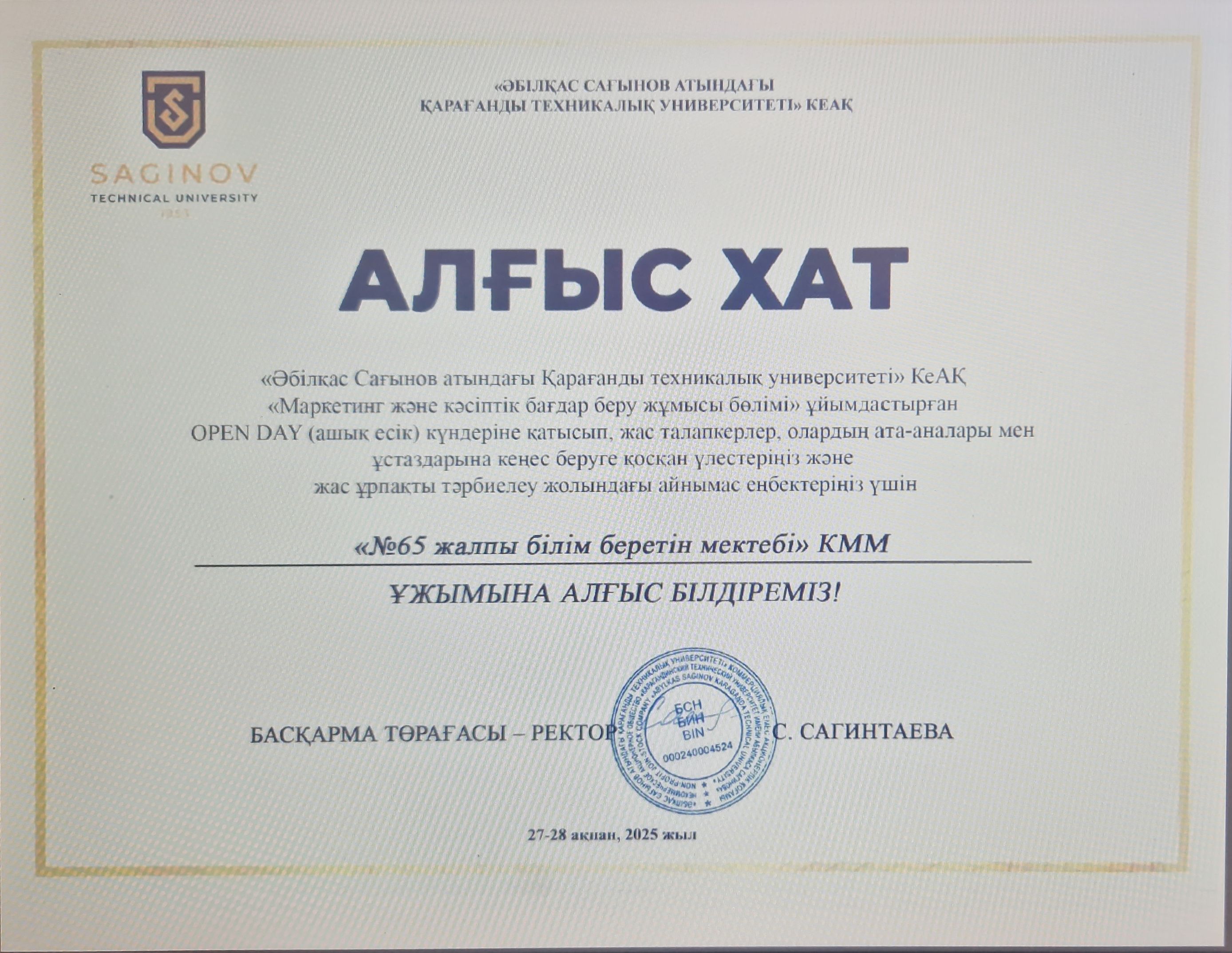 24.02.2025 г. Представители Горно-индустриального колледжа Птицына Елена Ивановна, Сулейменова Алданыш Картаевна, расположенного по адресу: г. Караганда, Магнитогорская 24/1 3 п…