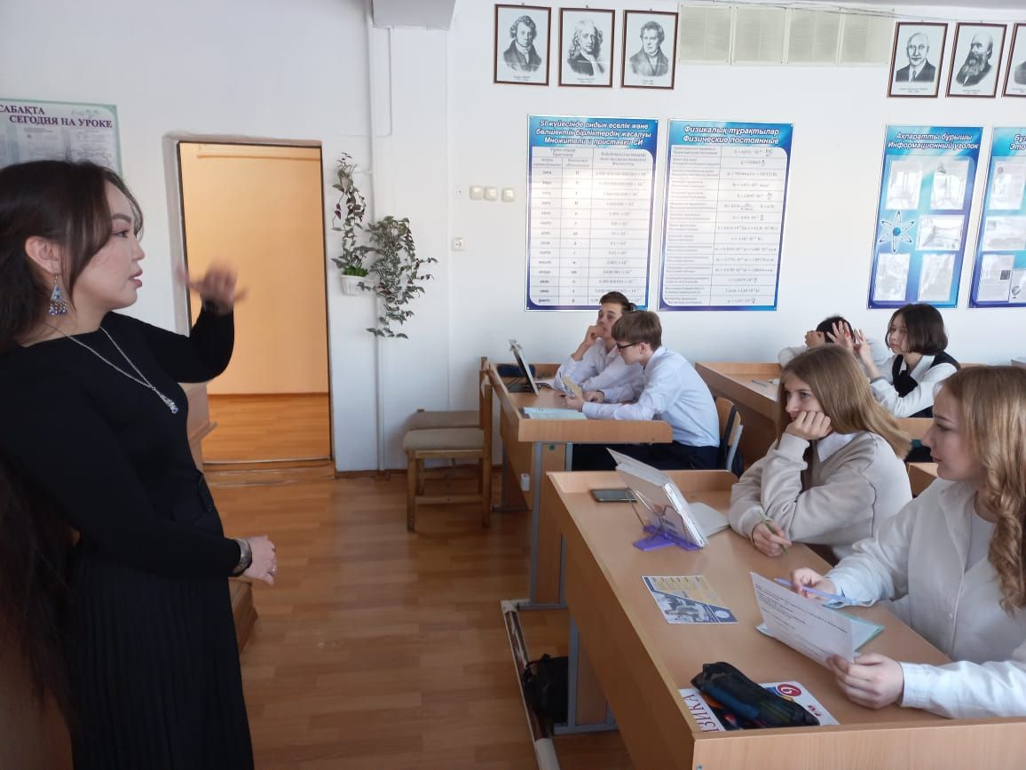 Представитель высшего колледжа „Bolashaq“ провел профориентационную работу среди учащихся 9 классов. В ходе встречи представители СУЗ-а путем раздачи информацио…