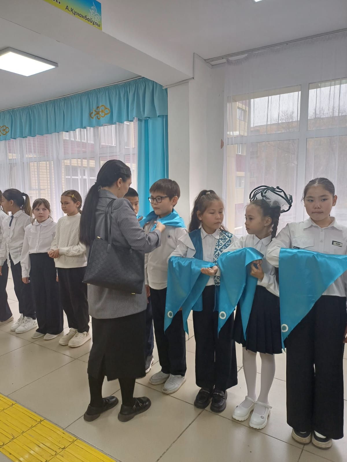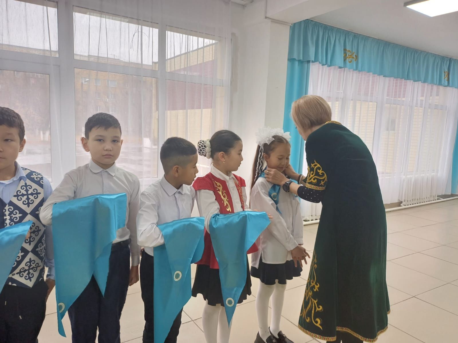 Тақырыбы: «Жас Ұлан» және «Жас Қыран» ұйымы қабылдау 2024 жылдың 23 қазанында Республика күніне орай мектебімізде Республикалық бірыңғай &l…