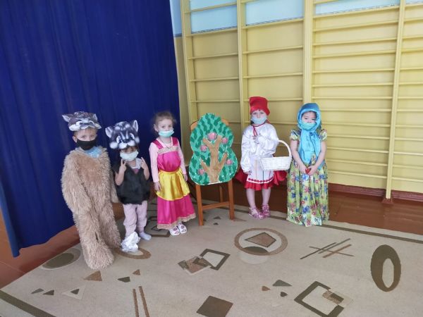 Қою театрландырылған көрініс "Қызыл телпек" және "қайырымды қасқыр"