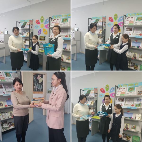 4 Ж сынып оқушылары Туған мектебінің кітапханасына балалар кітаптарын сыйға тартты.