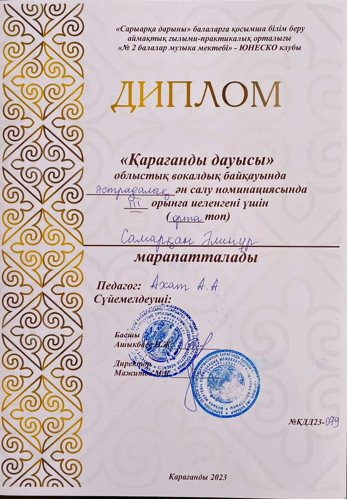 В областном  конкурсе "Голос Караганды" заняли призовые места учащиеся Самаркан Алинур и Шайхбек Молдирди, и педагог по вокалу Архат Ахатович.