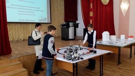 Бүгін, 16 наурыз 2017 ж. №66 ЖББОМ-де "Робототехника кабинетінің бастапқы кезеңіндегі даму мүмкіндіктерінің көрсетілімі" атты қалалық семинар өтті. Семинарға ҚарМУ-нің "қолданба…