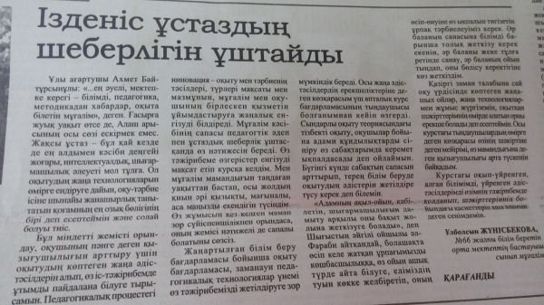 Республикалық "Егемен Қазақстан" газетінде бастауыш сынып мұғалімі Жунусбекова Улбосын Жолшараевнаның "Ізденіс ұстаздың шеберлігін ұштайды"атты мақаласы жарық көрді…