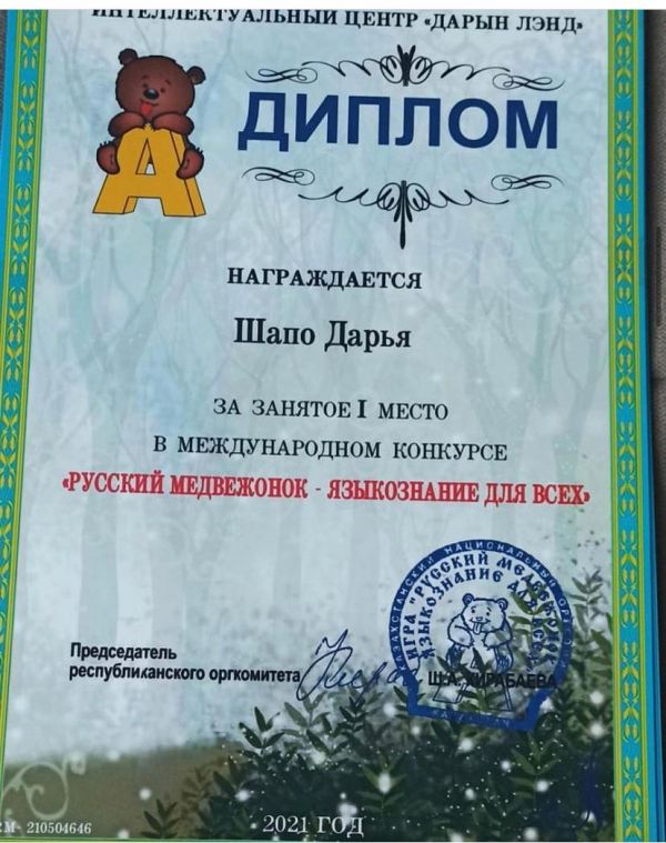 Ученики 2 "Д" класса приняли участие в международном конкурсе "Русский медвежонок -языкознание для всех". Победители конкурса. Молодцы.