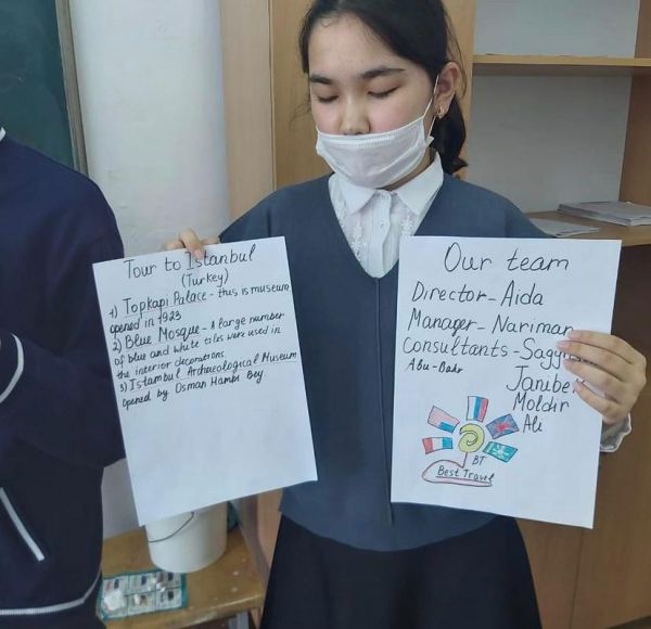 Ойын арқылы сабақты қызықты өткізу және оқушылардың қызығушылығын арттыру мақсатында 9"Ә" сыныбында "Talking about travelling" сабағында оқушылар өздеріне ұнайтын елдерге тур өтк…