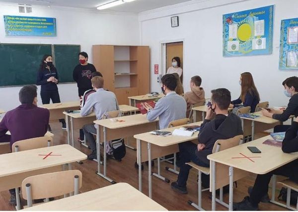 11.02.2021 ж.11 сынып оқушыларымен кәсіптік бағдар беру жұмысы аясында М. С. Нәрікбаев атындағы КАЗГЮУ Университетінің өкілдерімен кездесу ұйымдастырылды.