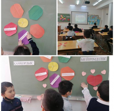 3 "Б" сыныбында Өзін-өзі тану пәні бойынша "Адамгершілік құндылықтары" тақырыбы аясында өткен онкүндіктегі сабақтан үзінді. Пән мұғалімі:Дюсенкулова А. К