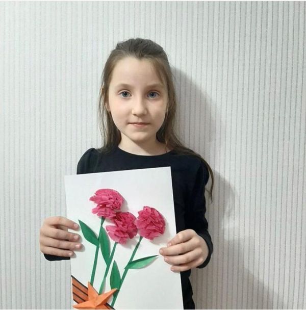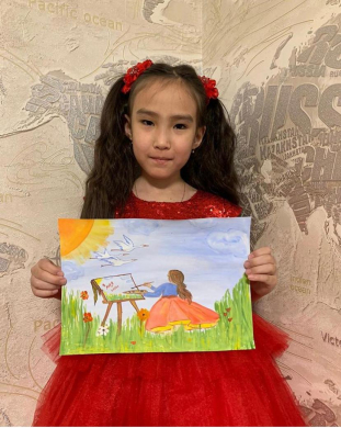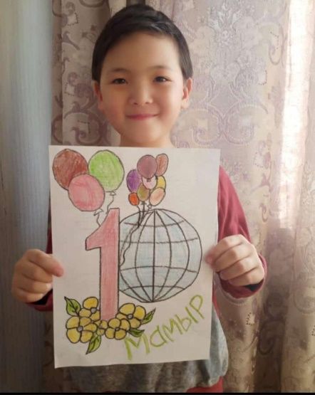 Сулейменова Аружан, 1 "Д" класс. Рисунок, посвящённый празднику 9 мая. Пусть всегда будет мир и счастье!