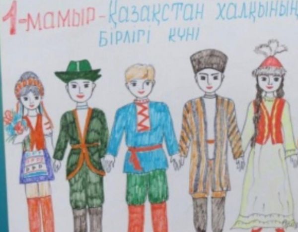 1 мамыр - Қазақстан Халықтарының Бірлігі күні мерекесіне орай өткен сынып сағатында 6 "Б" сынып оқушыларының салған суреттері.