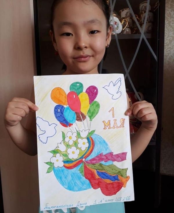 Работы Аружан, Арсена и Саши,учащихся 1 "Д" класса, посвящённые Дню Единства народа Казахстана. Учитель Третьякова Е.М.