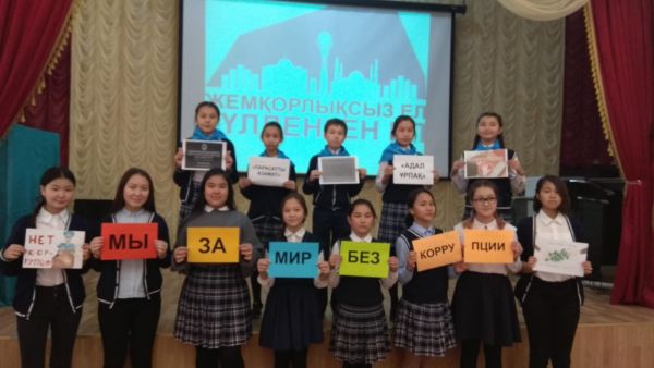"Дүниежүзілік жемқорлықпен күрес" күніне орай "Адал ұрпақ" ерікті клубының мүшелері "Жемқорлықты тоқтатамыз" ұранымен оқушылардың алдында өнер көрсетті. Қолдарына үндеу…