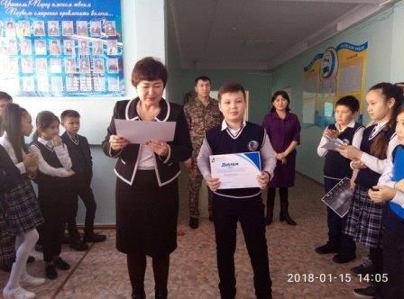 №66 мектеп-лицейінде 19.01.17. күні «Бір аймақ, бір кітап» акциясы аясында Қ.Қайсеновтың «Жау тылындағы бала» повесі бойынша «Қасым Қайс…