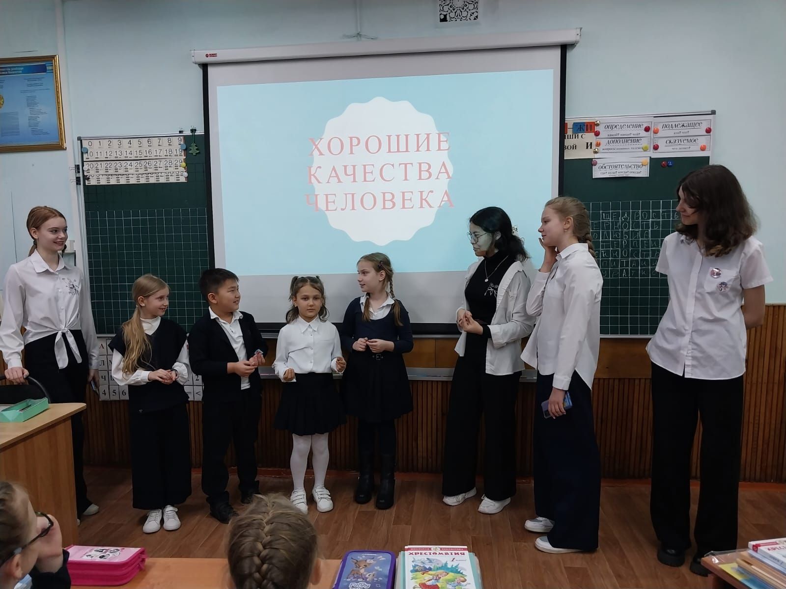 "Жас тәлімгер мектебі" үйірмесінің бағдарламасы аясында 2024 жылғы 22 қаңтарда 8 "А" сынып оқушылары "адамның жақсы қасиеттері" тақырыбында 1 "В"сынып сағатын…