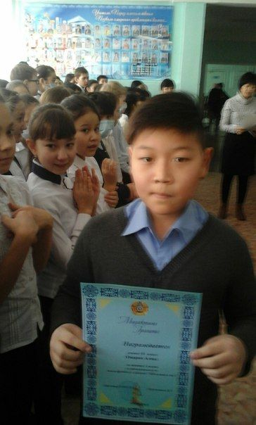 1.02.2016 года на школьной линейке ученикам 5В класса Чуприну Данилу и Омарову Алмазу вручены грамоты соревнования по футболу.