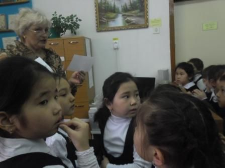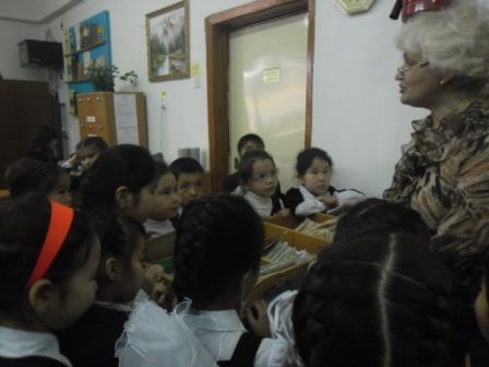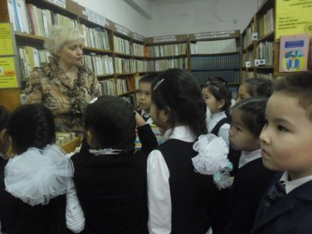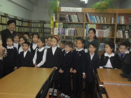 1 А сынып оқушылары (Сынып мұғалімі Кошикова М.Б.) мектеп кітапханасына саяхатқа барды Мектеп кітапханашысы Глебова Е.В. оқушыларды кітапханадағы бастауыш сынып оқушыларына арналған кітаптармен, жур…