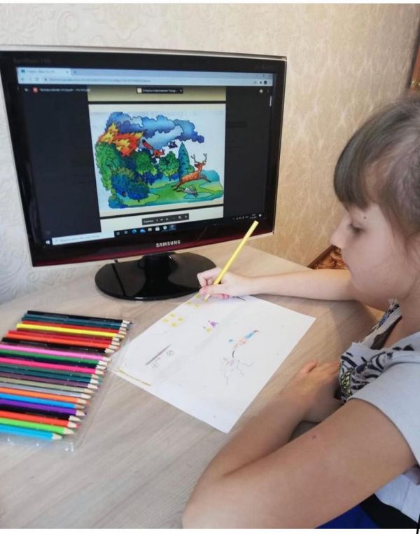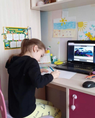 Классный час во 2Ж. Дети смотрели презентацию, выполняли рисунки.