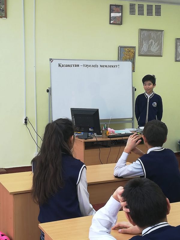 В 5 "А" классе в преддверии праздника "Дня Независимости" прошел классный час на тему "Независимый Казахстан"