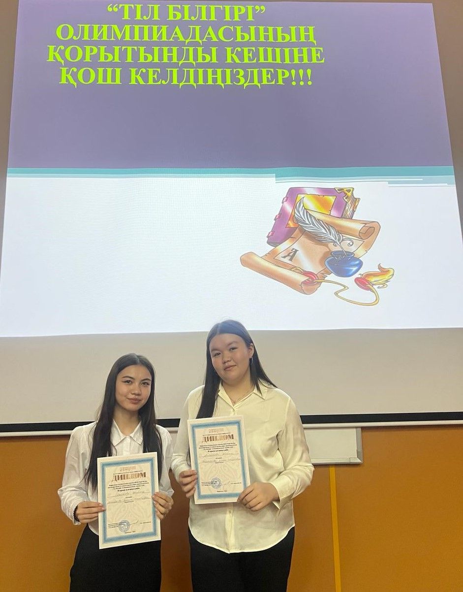 На традиционной областной олимпиаде среди школьников "Тіл білгірі" учащиеся 11ә класса Серикова Дильназ , Алмасова Айсана заняли 2 место.