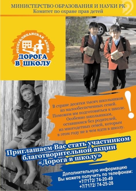 С 1 августа по 30 сентября 2018 года стартовала традиционная общереспубликанская благотворительная акция «Дорога в школу».