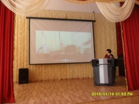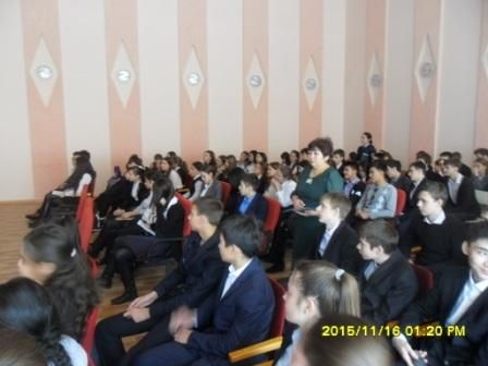 2015 жылдың 13 қазан күні мектебімізде «Дүниежүзілік темекі шегумен күрес» күніне байланысты 8 – 11 сынып оқушыларының қатысуымен облыстық СӨС сақтау орталығының бас маманы - Гайни…