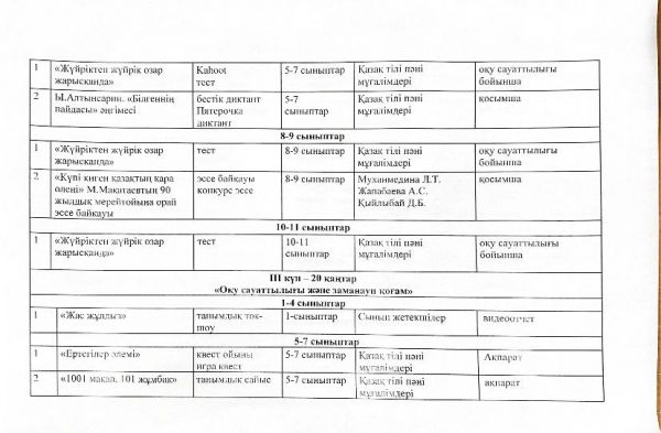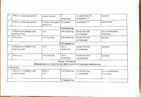 "ХХI ғасыр - сауатты ұрпақ ғасыры" атты оқу сауаттылық апталығының "Функционалды сауаттылық - тұлға қалыптастырудың жаңа жолы" тақырыбындағы 20.01.2021 жылды…