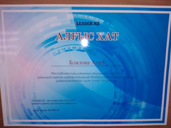 Республикалық "Дарынды ұрпақ" сайысына қатысқан 4 А сынып оқушылары түрлі номинация бойынша 1 және 2 дәрежелі Дипломмен марапатталды. Сынып жетекшісі Блялова Алуа Аманжолқызы Алғыс хатпен…