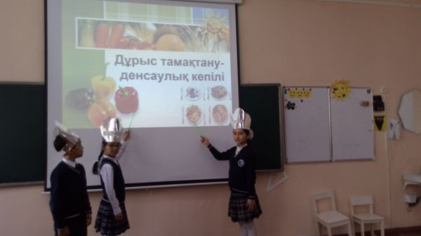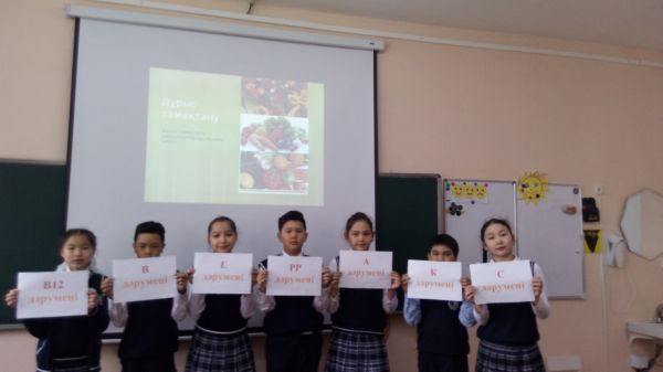 "Мектептегі үйлесімді тағамдағы ақуыздар, майлар, көмірсулардың маңызы" тақырыбында сынып сағаты өтті
