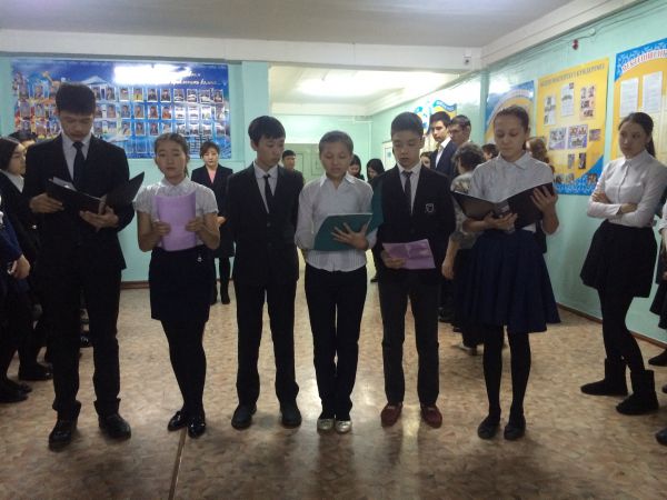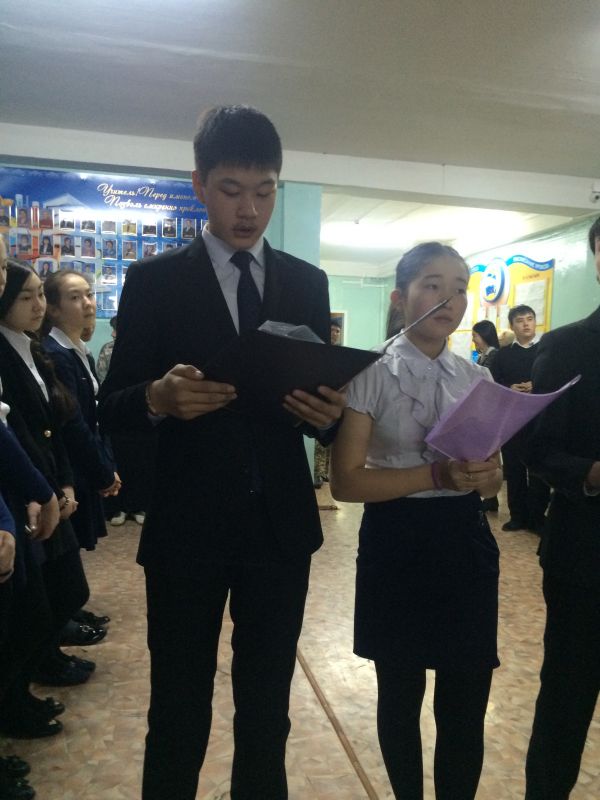 16.02.15 ж. Мектептепішілік жиынды 8 Ә сынып оқушылары өткізді. Жиын Кеңес әскерлерінің Ауған жерінен шығарылуына 26 жыл толғанына арналды. Оқушыларға «жарияланбаған соғыс» туралы мәліме…