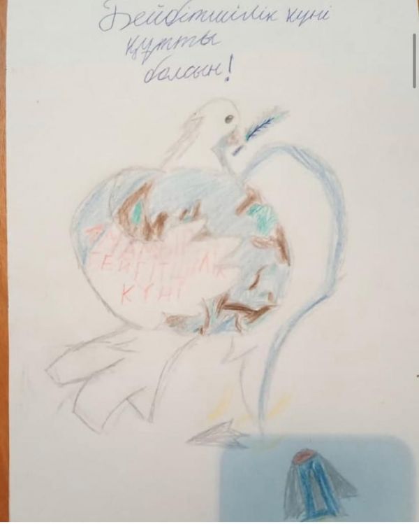 2Ә сынып оқушыларының 1 Мамыр Қазақстан Халықтарының бірлігі күні мерекесіне арнап салған суреттері.