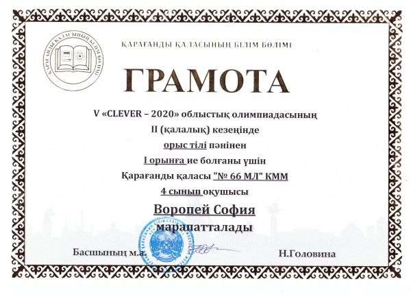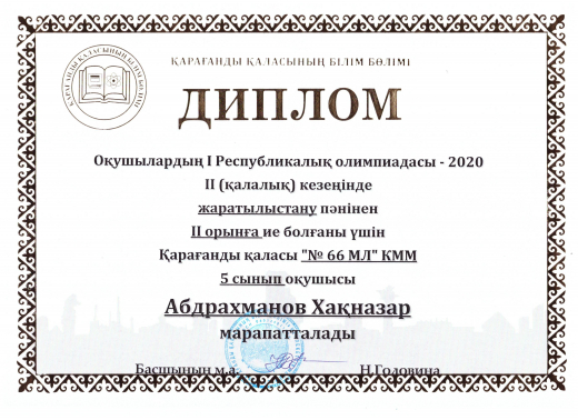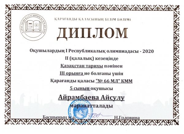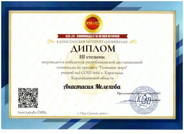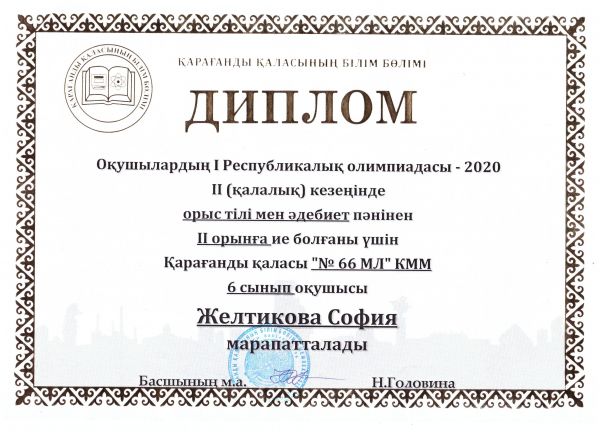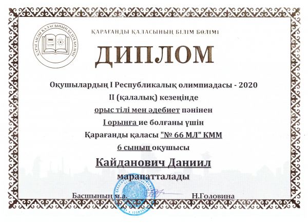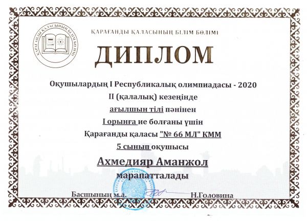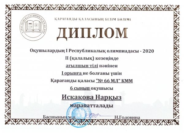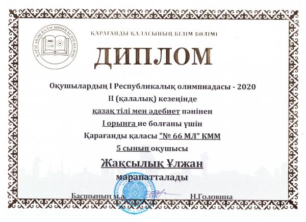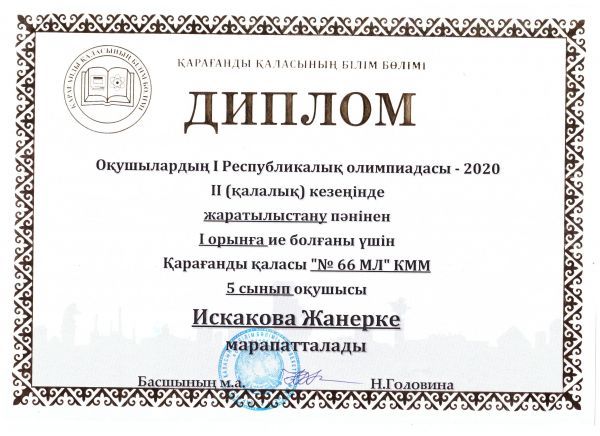Диплом награждается победитель республиканской дистанционной олимпиады для учителей учитель школы-лицея №66 г. Караганды
