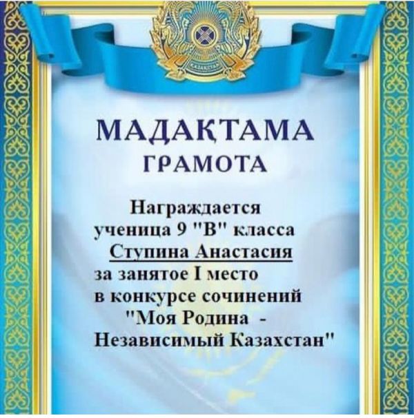9-11 сыныптар арасында өткен «Моя родина Независимый Казахстан» атты шығарма конкурсы өтті.