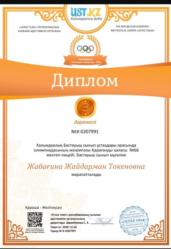 Халықаралық  бастауыш сынып арасында өткен олимпиада жеңімпаздарын құттықтаймыз! Марапаттарыңыз мол болсын!