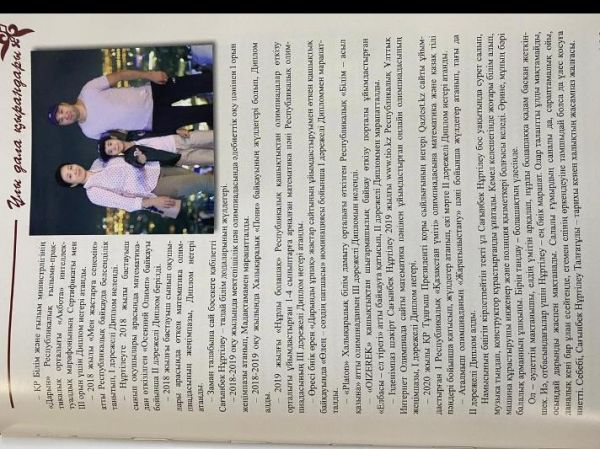 "Ұлы дала қырандары" журналына топ жарып енген 4А сынып  оқушысы  Сағынбек Нұртілеу Талғатұлы. Сынып жетекшісі Блялова Алуа Аманжолқызы
