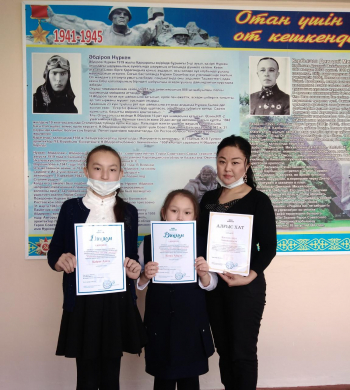 А. Құнанбайұлының 175 жылдық мерейтойына орай ұйымдастырылған"Абай-дана, Абай-дара қазақта "атты Республикалық байқауда 4 А сынып оқушылары Қайрат Адель мен Кенже Айсұлу 1-дәрежелі Дипломм…