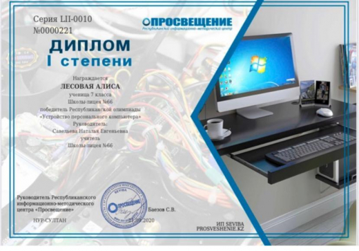 1а сынып оқушысы Иманғазы Айзере "Baby FM"радиосының ұйымдастыруымен өткен республикалық "Самая красивая девочка" онлайн- байқауына қатысып, грамотамен марапатталды. Құттықтаймыз…
