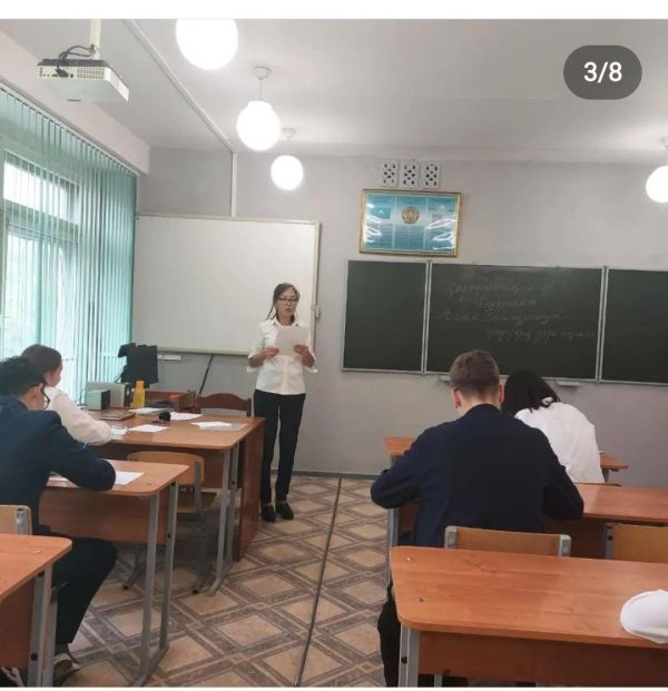 8 қыркүйекте 6 «А», 6 «Б», 6 «Г» сынып оқушылары Қазақстан халқы тілдері күніне және А.Байтұрсынұлының 150 жылдығына арналған «Ахмет Байтұрсынұлы - Ұлт жана…