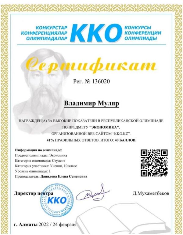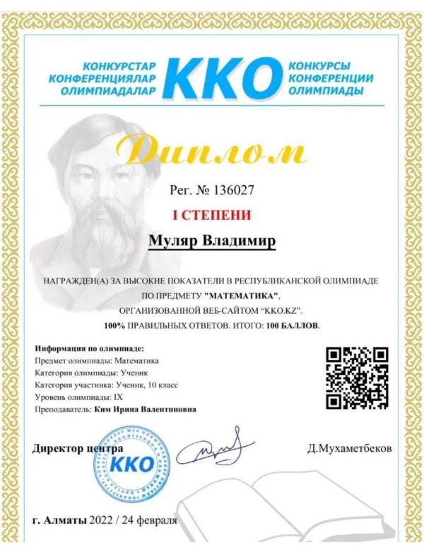 Муляр Владимир 10а класс. Поздравляем!