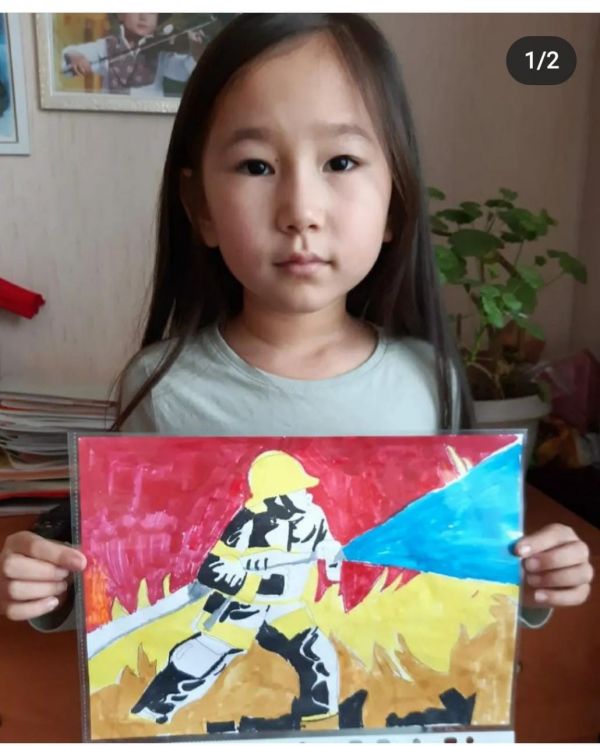 Жунусова Лейла, 2 а класс. Конкурс рисунков, посвящённый "Всемирному дню Гражданской обороны".