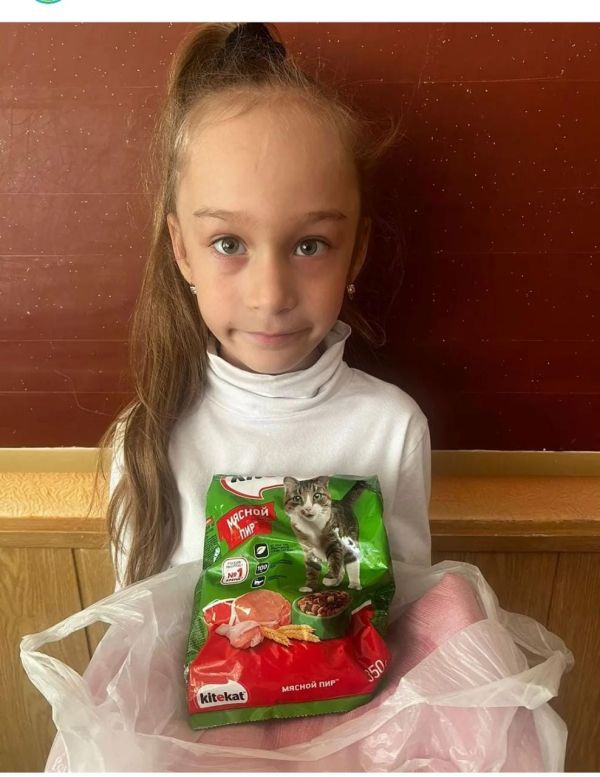 Абдулганиева Амина, ученица 3 б класса приняла участие в акции помощи бродячим животным.