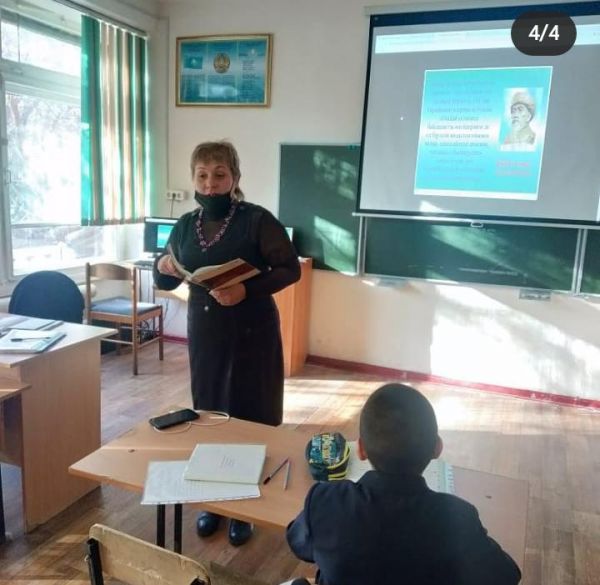 45 гимназияның кітапханашысы Пляскина В.П 3-4 сынып оқушыларының қатысуымен Бұқар жырау Қалқаманұлының туғанына 350 жыл толуына байланысты іс-шара өткізді.