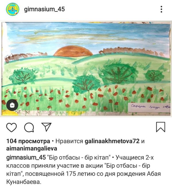 Учащиеся 2-х классов приняли участие в акции "Бір отбасы - бір кітап",, посвященной 175 летию со дня рождения Абая Кунанбаева.