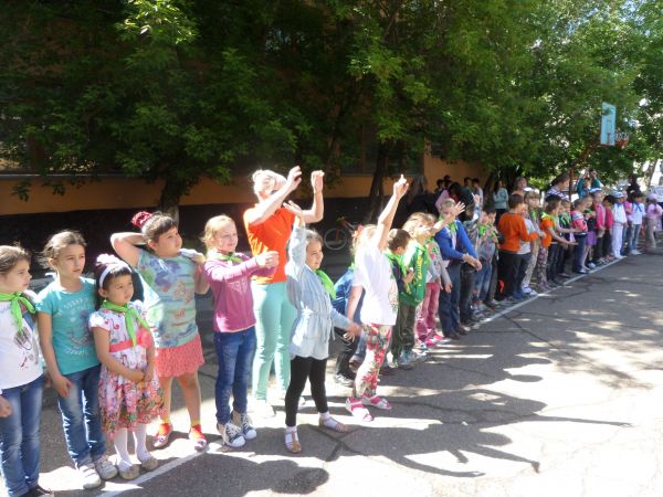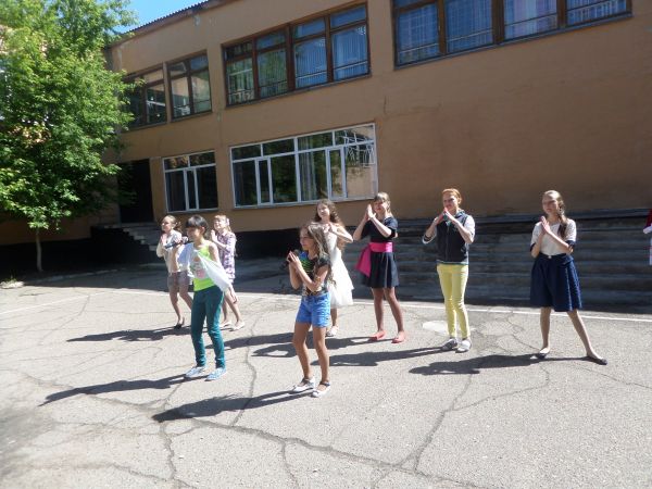 5 июня пришкольный лагерь начал свою работу в Долине спорта, где прошла зарядка в виде флэшмоба.