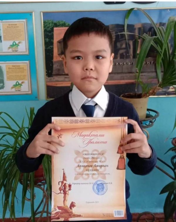 Апаханов Амирлан, ученик 2 Б класса. Поздравляем!!!!