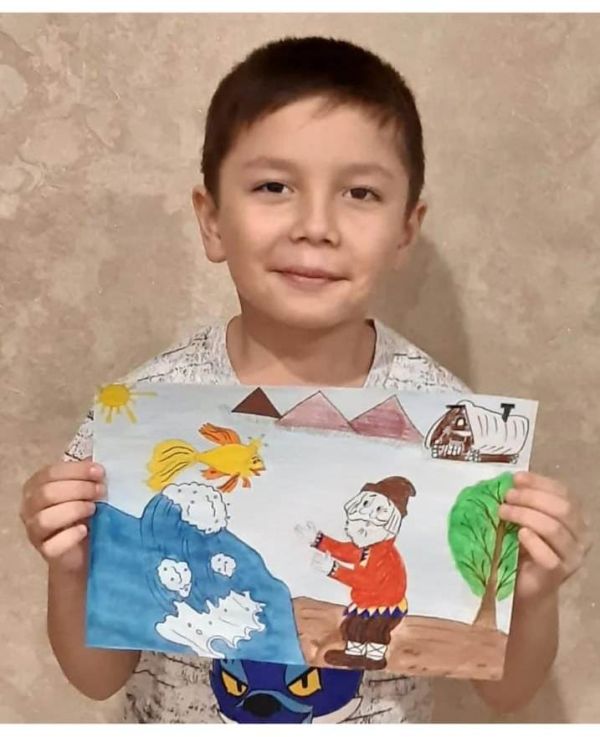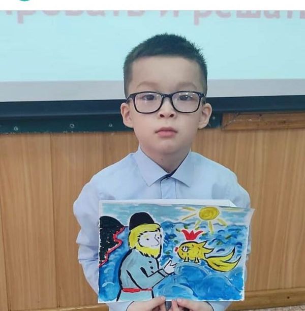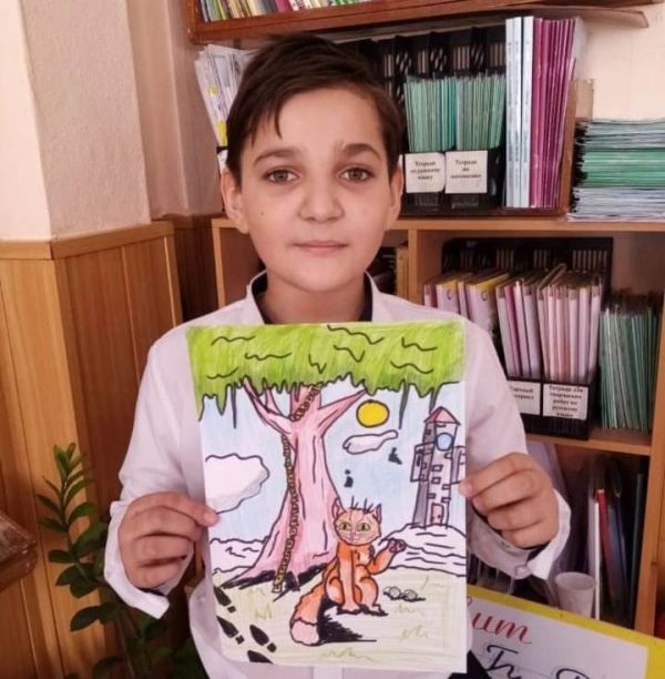 Алиев Карим- ученик 1 а класса принял участие в конкурсе рисунков " Сказки Пушкина "