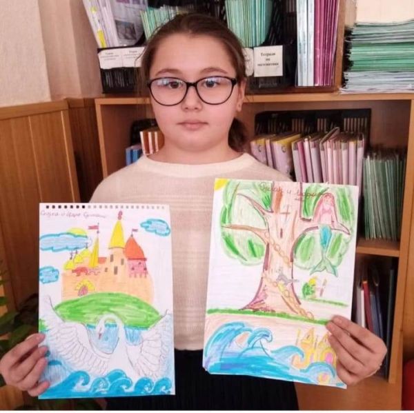 Грибовский Роман ученик 1б класса, в рамках недели читательской грамотности принял участие в конкурсе рисунков "Любимые сказки А.С.Пушкина".Васильченко Каролина, ученица 1 "В…
