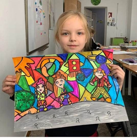 4 "Ә" сынып оқушысы Нұрбек Айсел "Менің сүйікті ертегілер " тақырыбында салған суреті