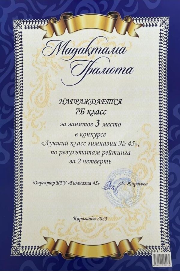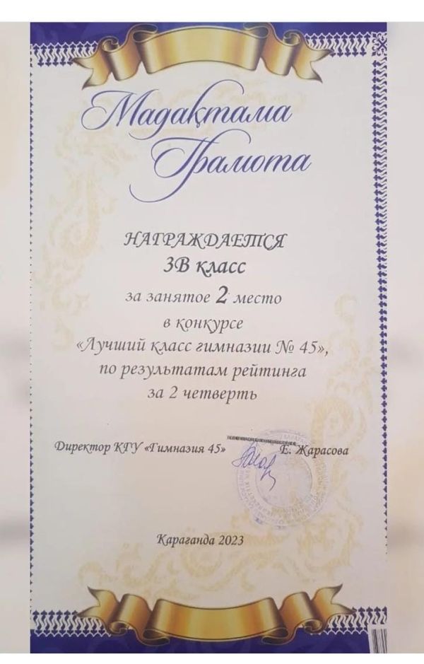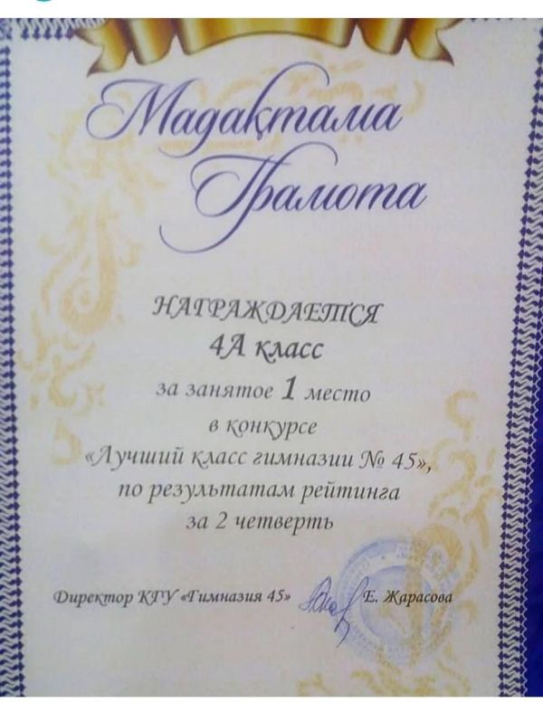Қарағанды қаласы әкімдігінің "Қарағанды қаласының білім бөлімі" мемлекеттік мекемесінің "№ 45 гимназия" коммуналдық мемлекеттік мекемесі